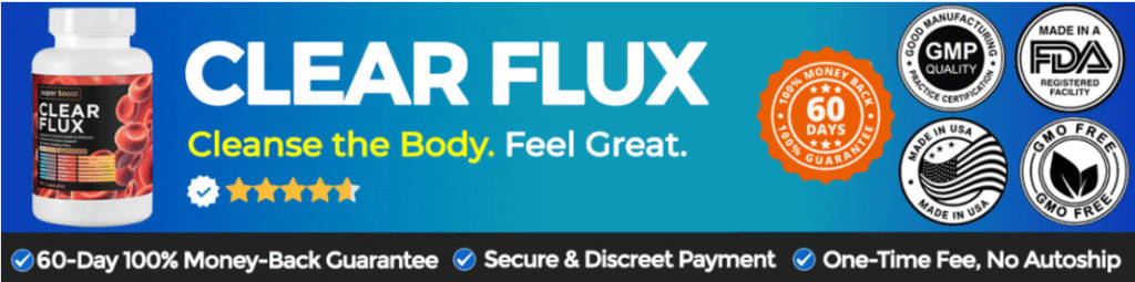 Clear Flux offers a science-backed, 100% natural solution designed to help your body restore balance safely and effectively — all without harmful chemicals or side effects.